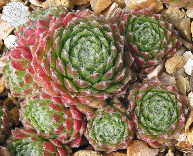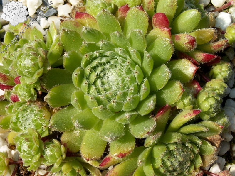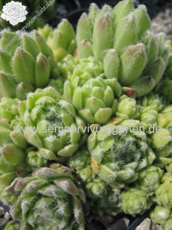 Die kleinen, leicht behaarten Rosetten bilden ganz dichte grüne Polster. Eine wüchsige Sorte!