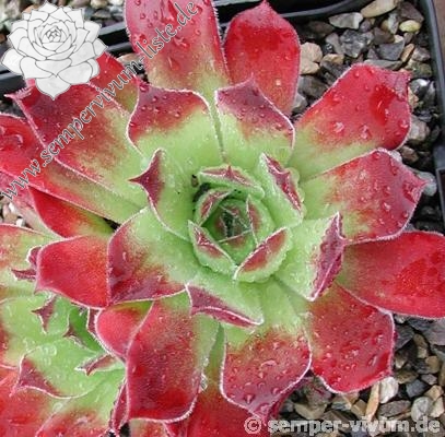 Bereits Ende der 80er Jahre wurde diese Sorte in Deutschland getauft: Große, hellgrüne Rosetten mit sehr kontrastreichen, leuchtend purpurfarbenen Blattenden.