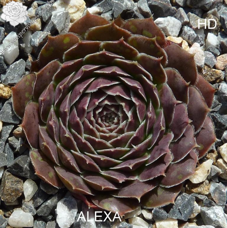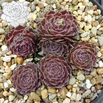 vielblättrige Rosetten bis 4 cm, keilförmige Blätter, kurz bespitzt, Mischfarben oliv - blasses Brombeer