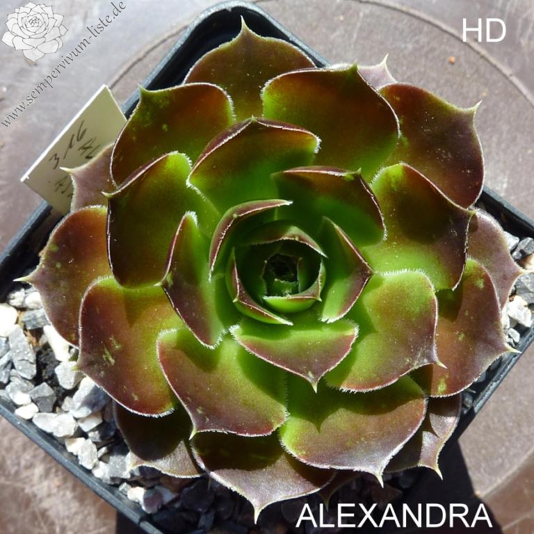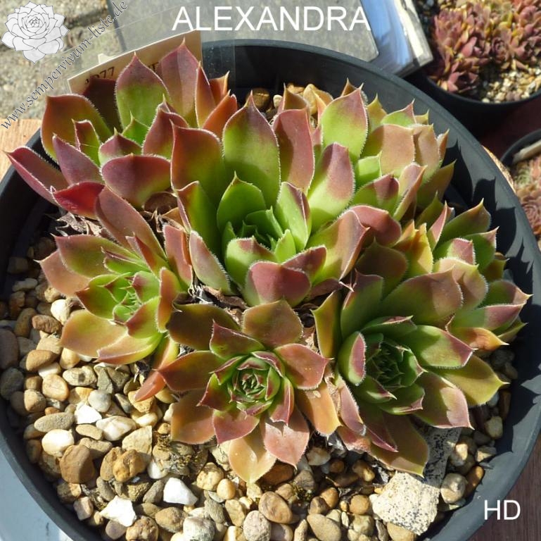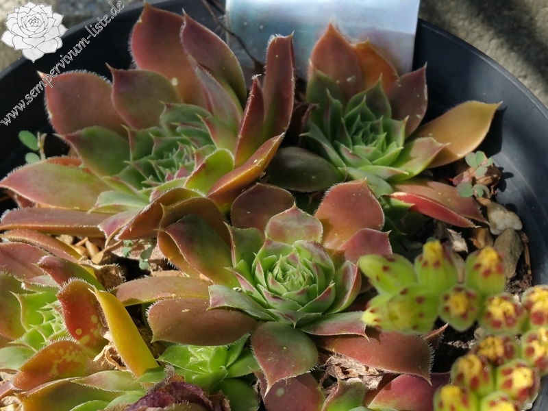Rosetten bis 6 cm, Zentrum hellgrün, Blattspitzen rosa-braun, Blattränder hell bewimpert