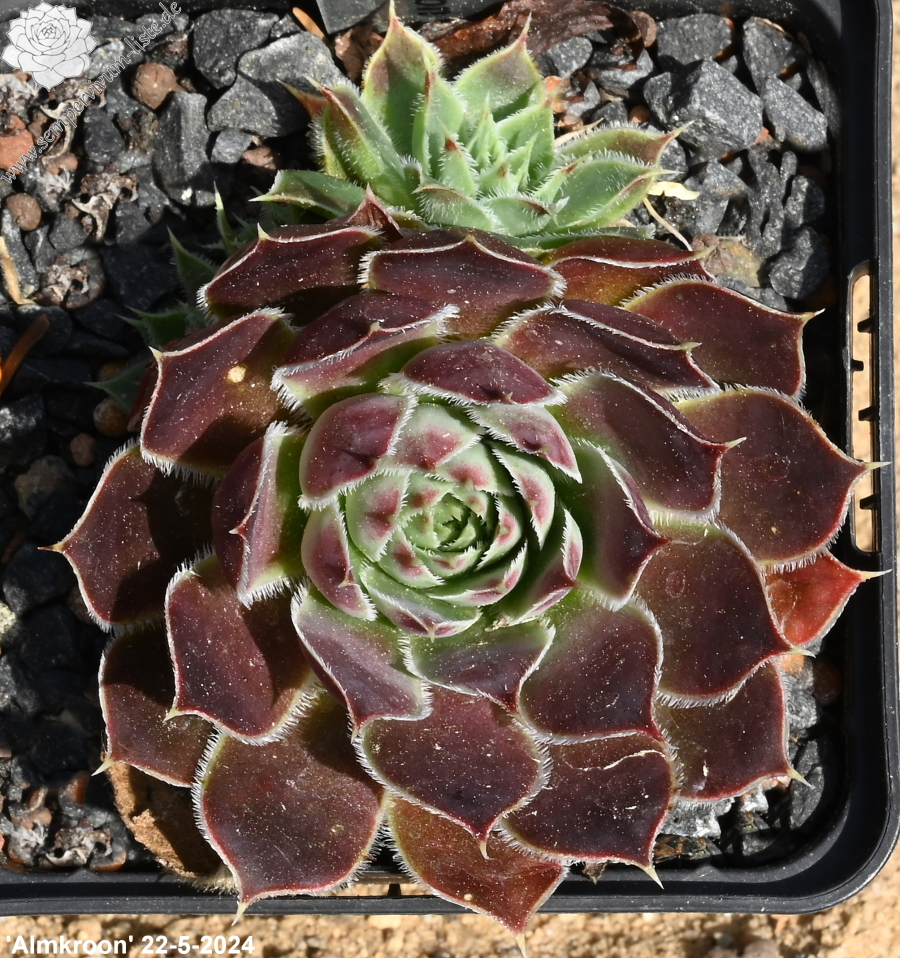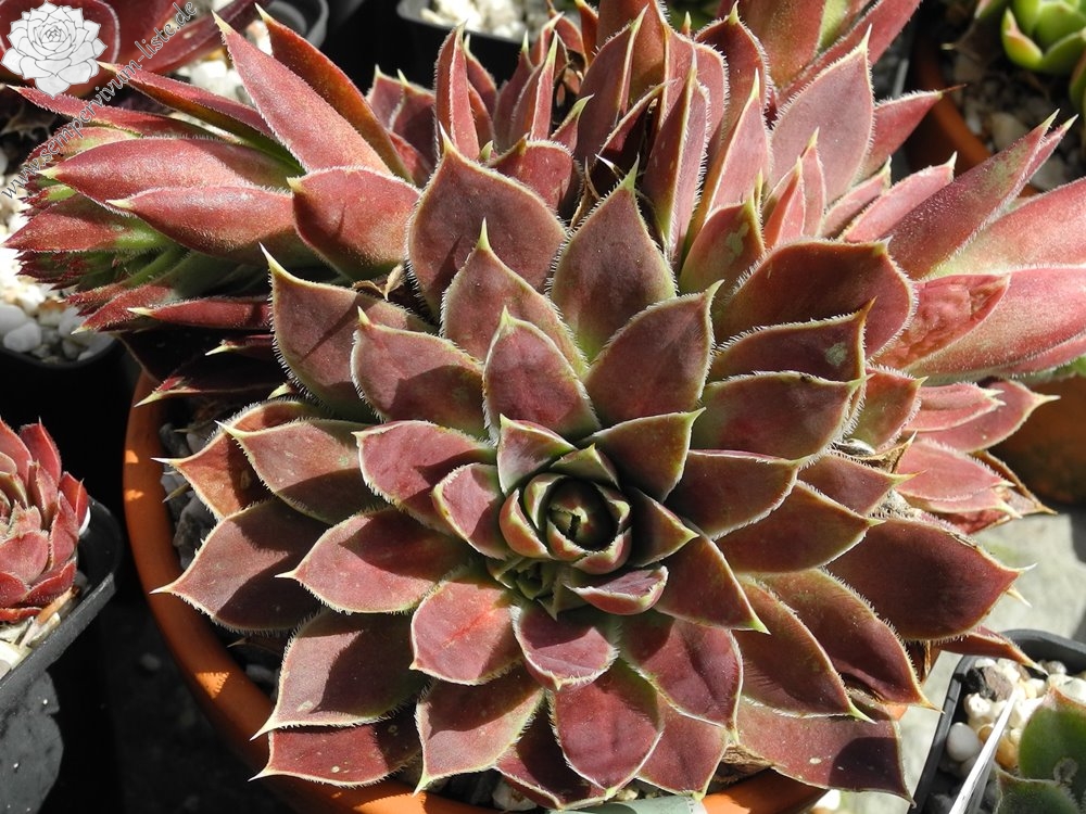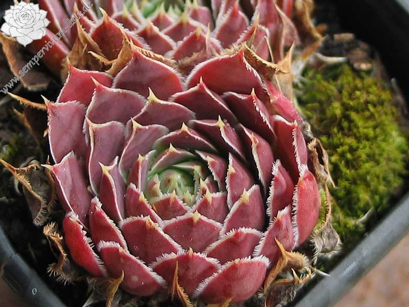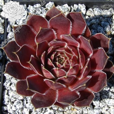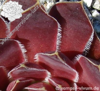 Dieser prächtige Kultivar formt recht große Rosetten in zwielichtiger Färbung. Die Blattränder sind lang und weiß bewimpert.