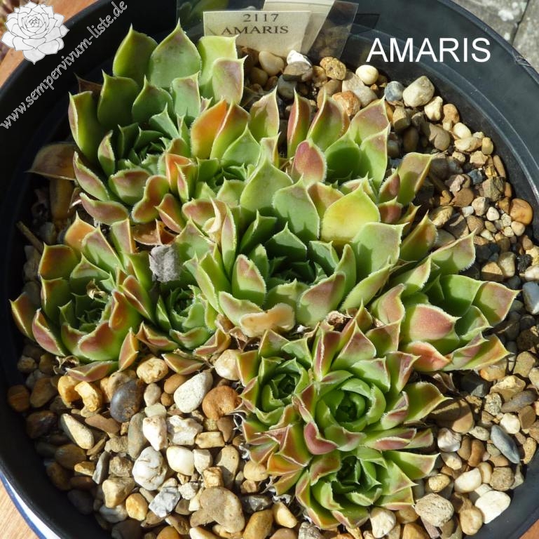 Rosetten bis 7 cm, günlich / gelb, Spitzen rötlich / braun , Blattspitzen hell bewimpert.