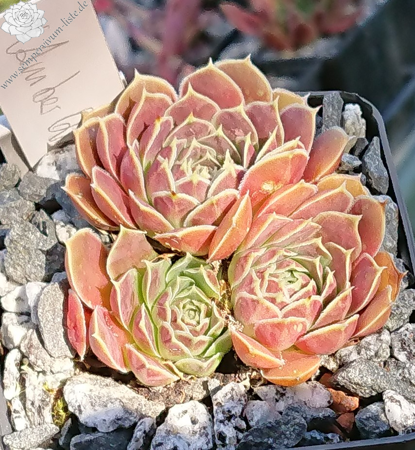 kleine Rosetten, grün / gelb in rosa übergehend, helle Blattränder.