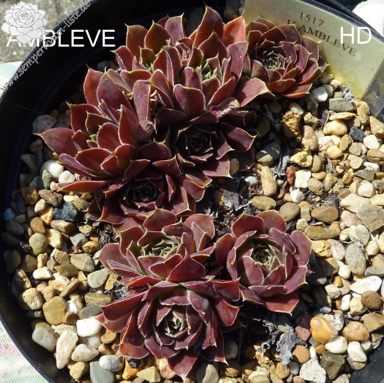 kleine Rosetten, dunkles Rot, Blattränder hell.