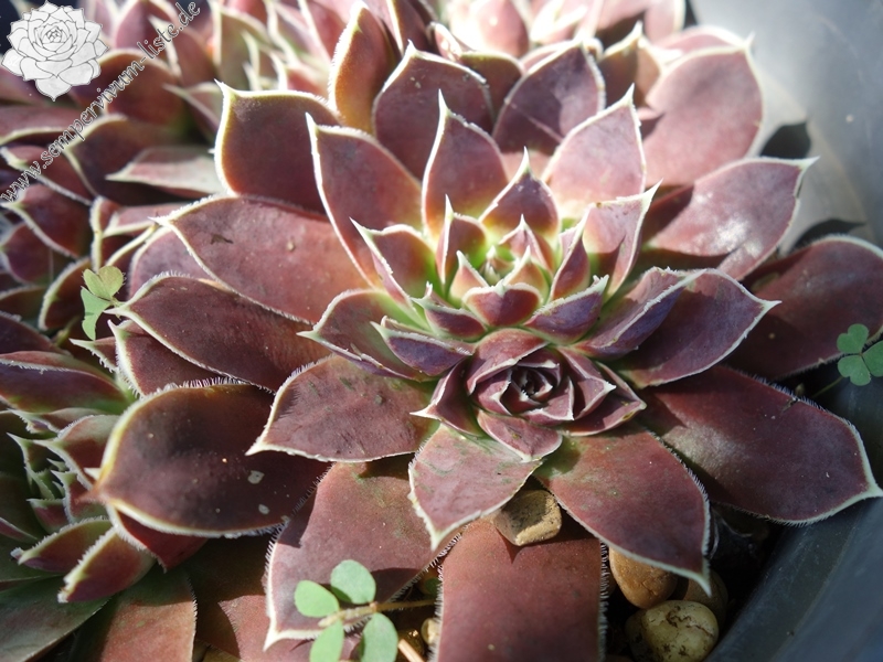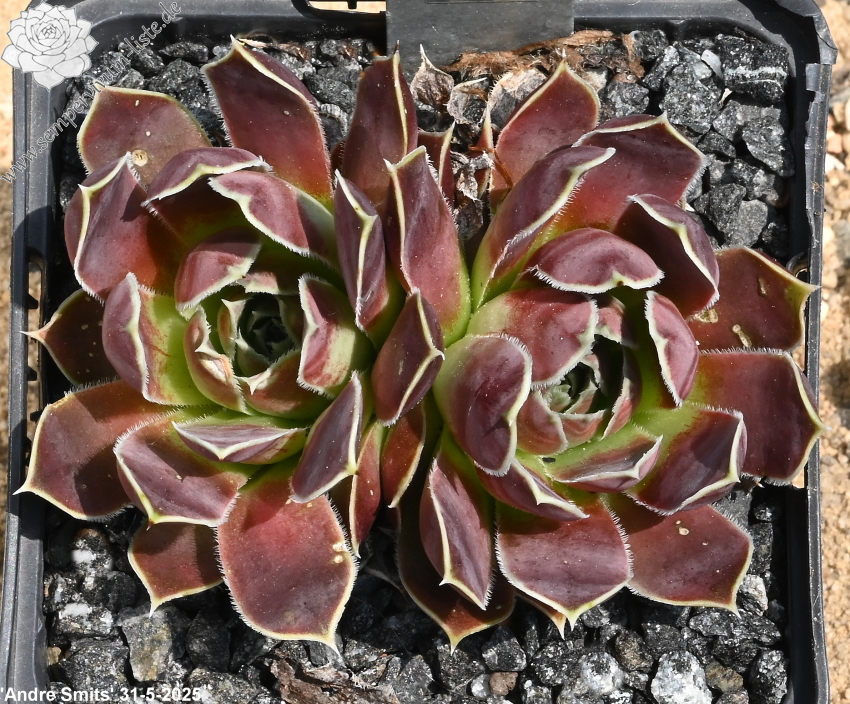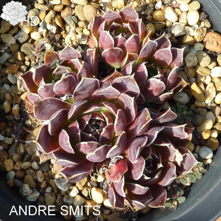 benannt nach dem Sammler und Züchter André Smits / Belgien / Rosetten bis 8 cm, kräftiges Rotlila, Blattränder hell