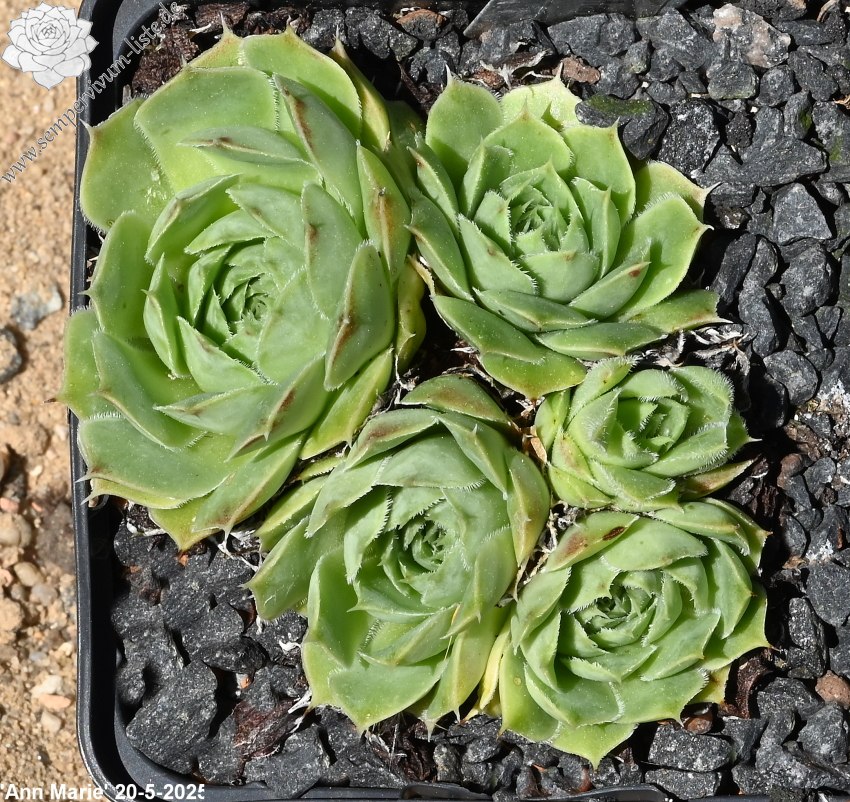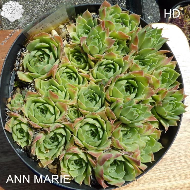 benannt nach der Tochter des Züchters / kleine Rosetten, hellgrün mit bräunlichen Spitzen.