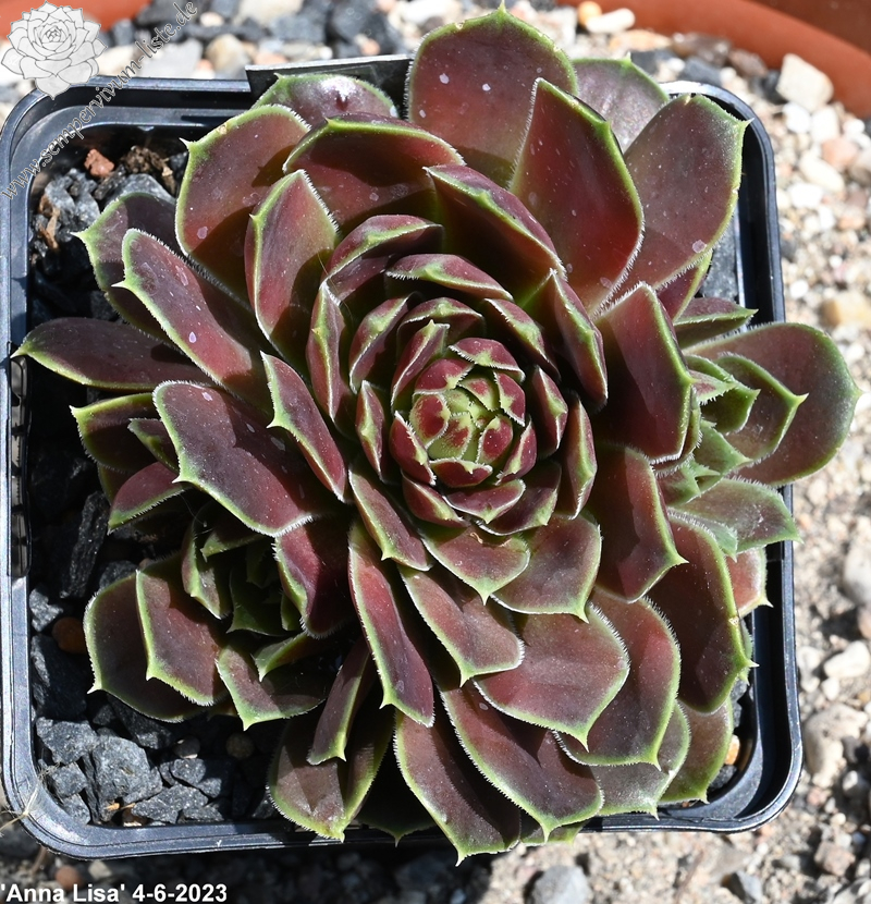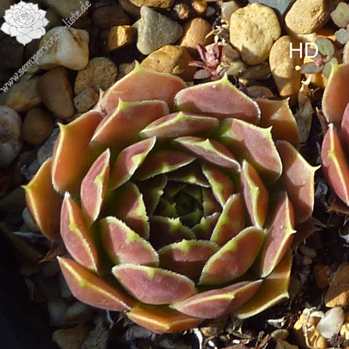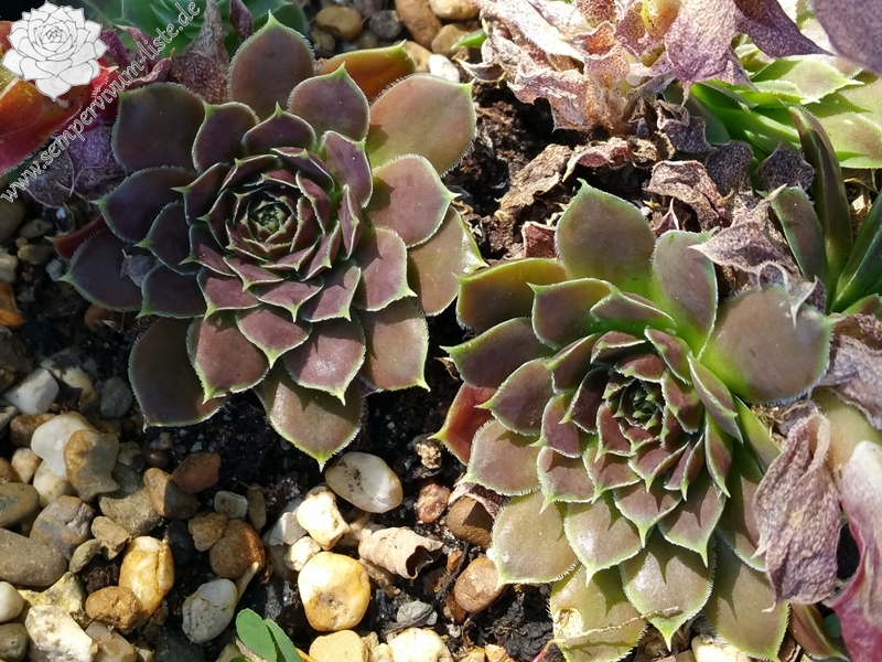 kleine Rosetten, rot / braun, helle Blattränder.