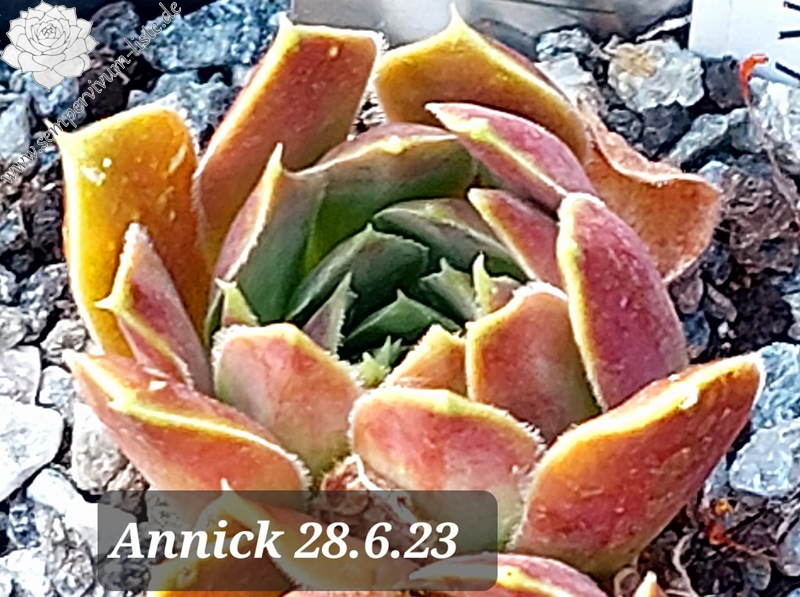 Rostten bis 7 cm, Blätter lang, schmal, spitz zulaufend mit hellem Rand, hellgrün bis dunkelrosa, bewimpert