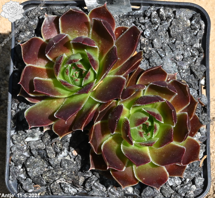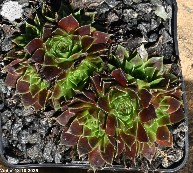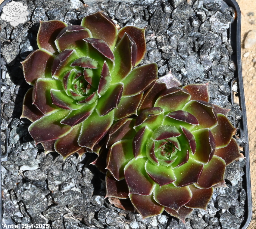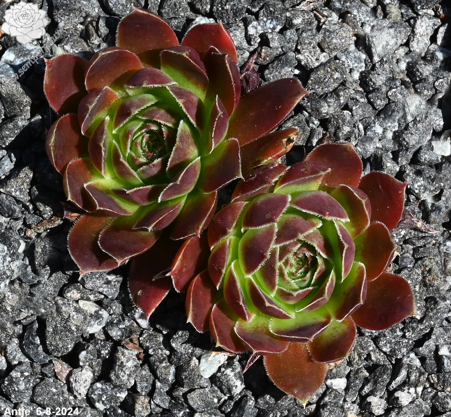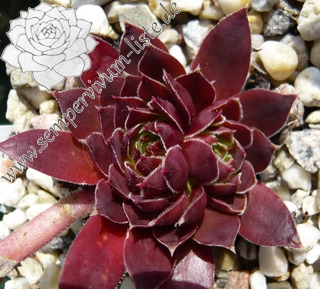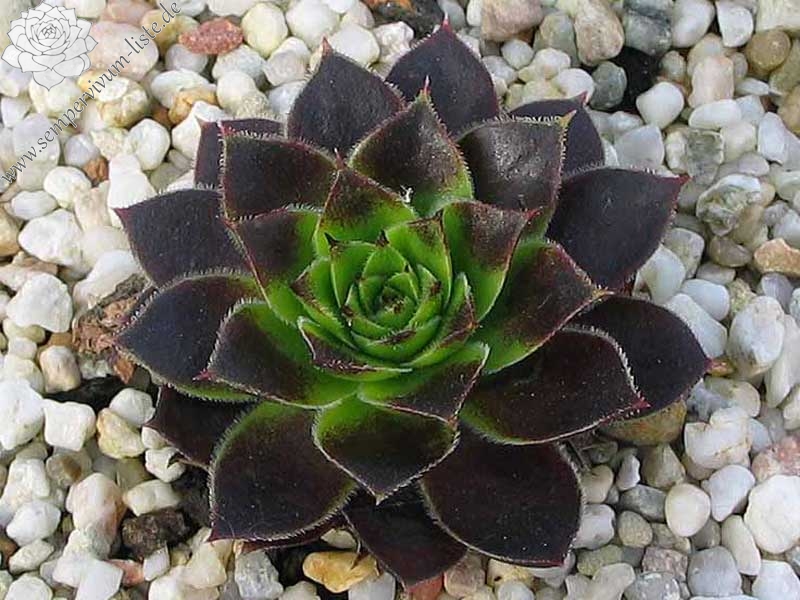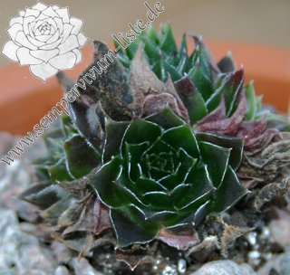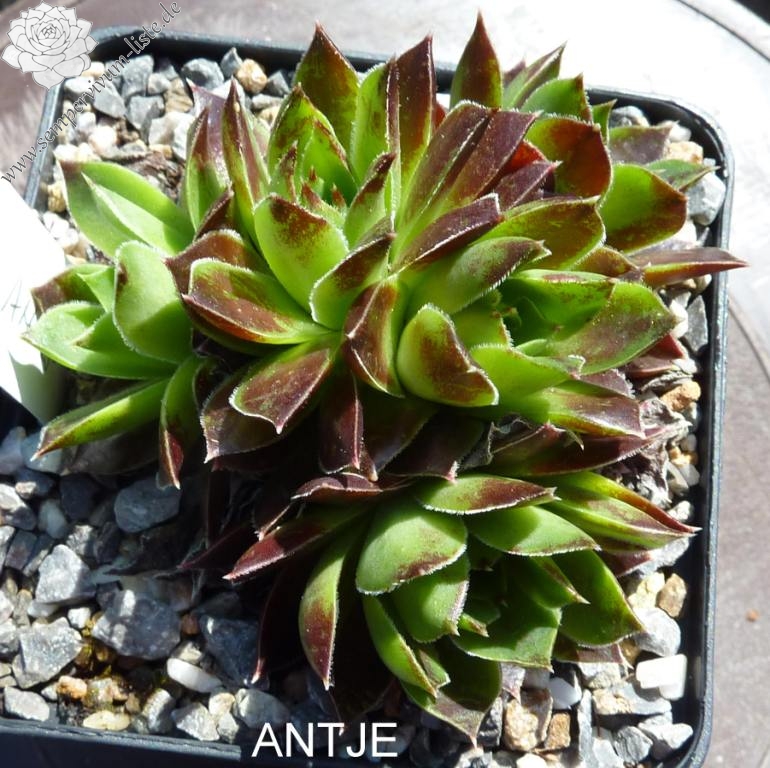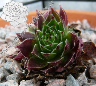 kleine Rosette, Basis hellgrün, bis zum Sommer weinrot, Blätter spitz zulaufend