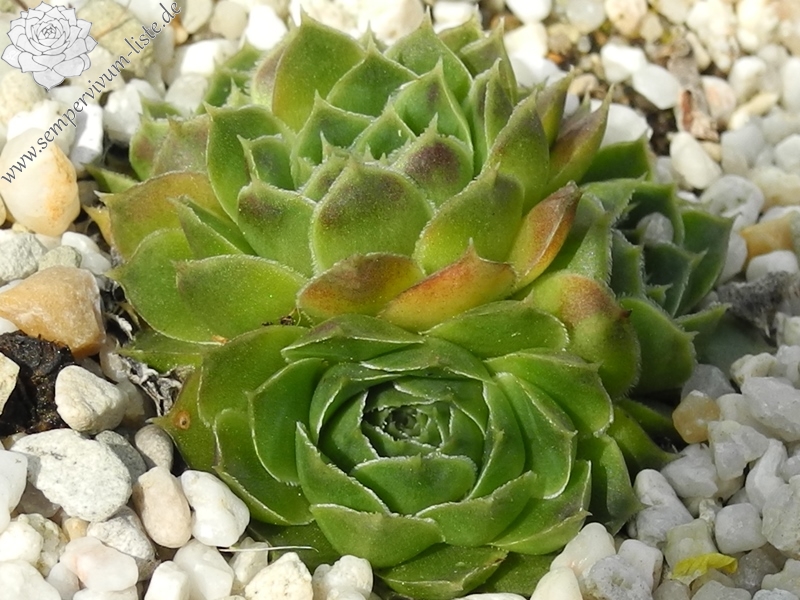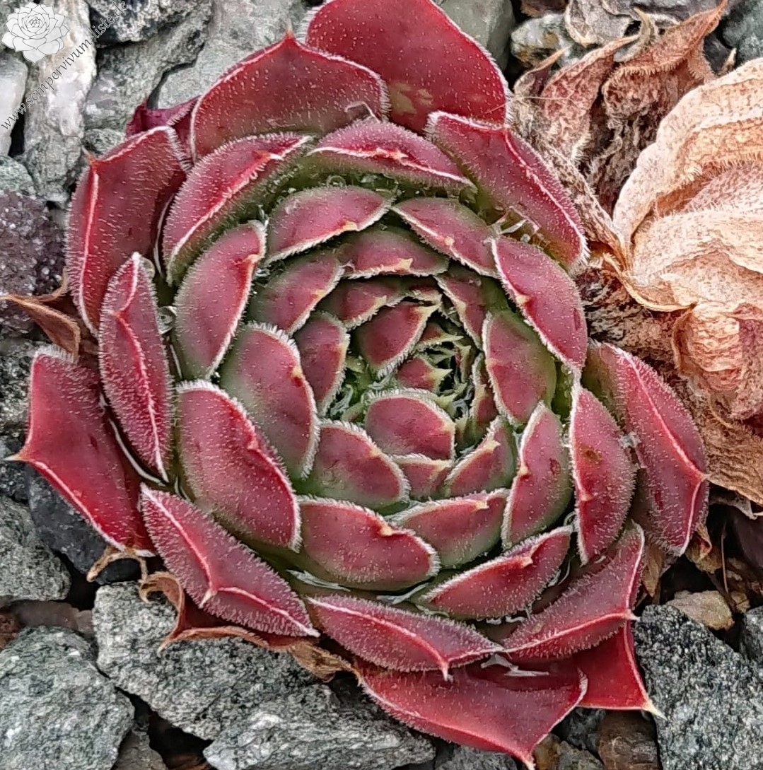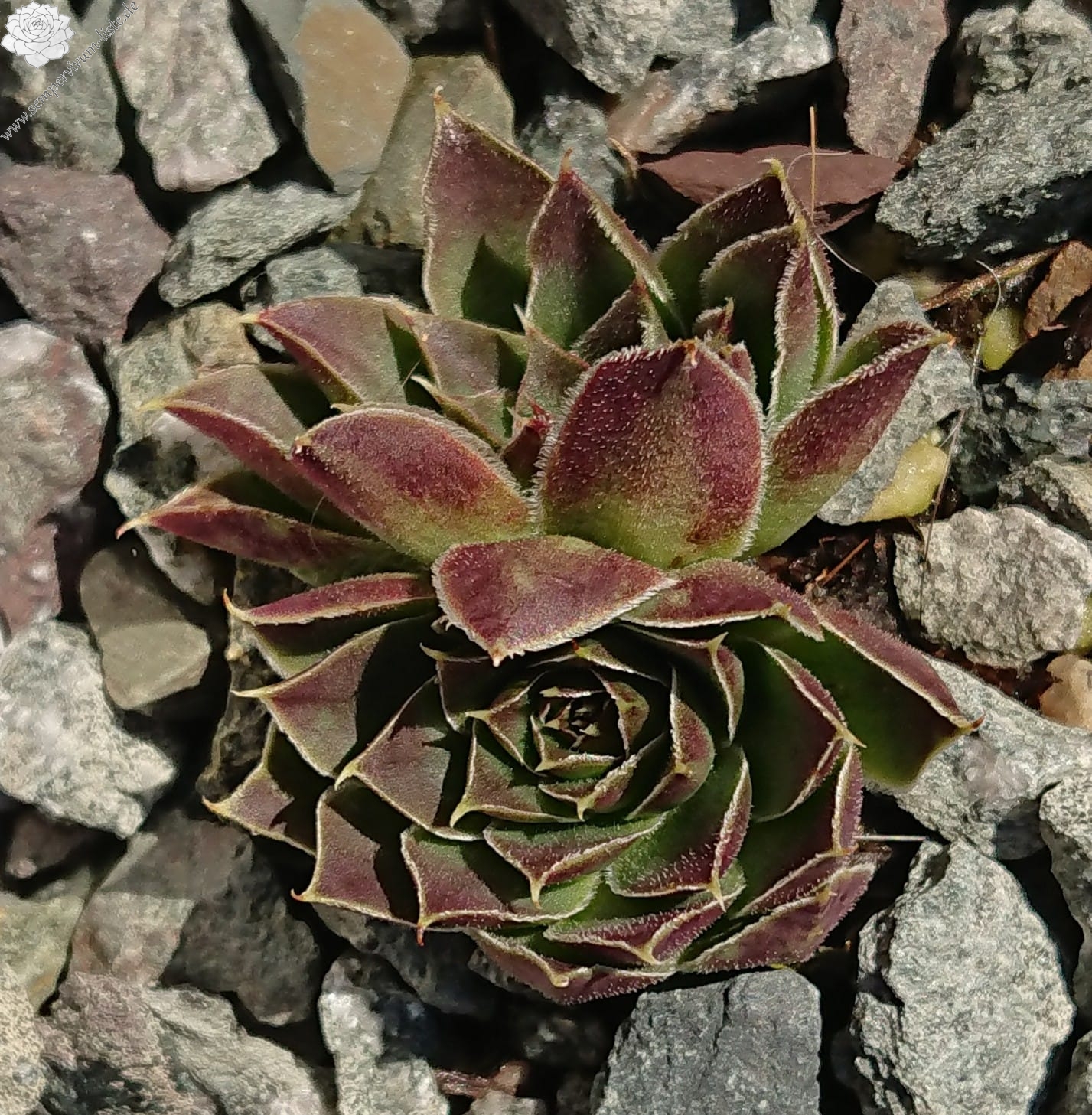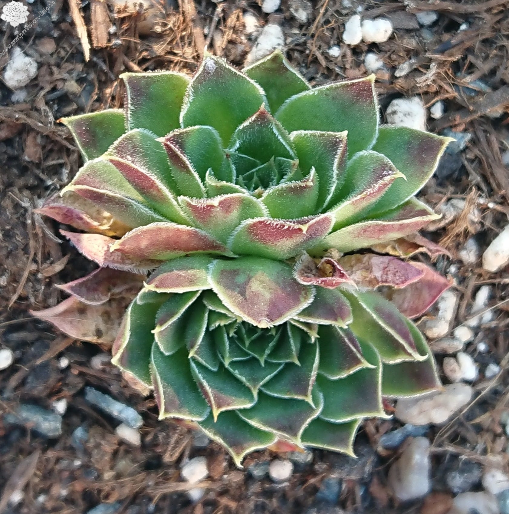 Rosette bis 8 cm, Basis blaugrün in rosarot übergehend, Blattränder bewimpert