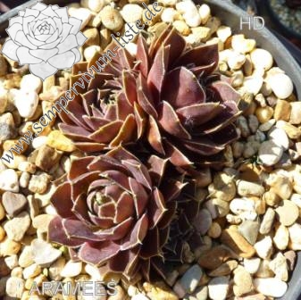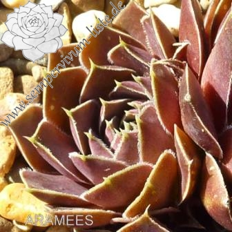 Rosetten bis 6 cm, Blätter oval, lang bespitzt, rosa - hellbraun, Blattränder gelb, bewimpert