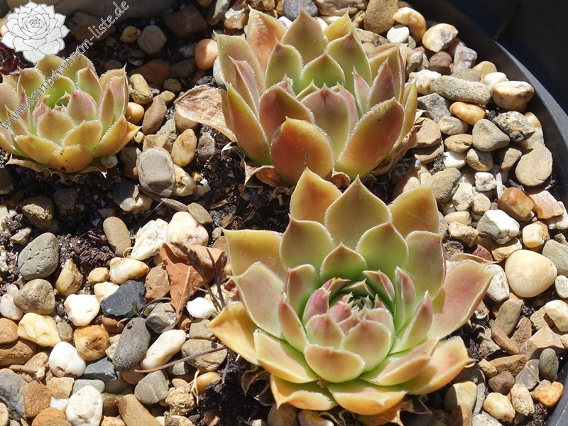 Rosetten bis 8 cm, helles Olivgrün, braun-rot panaschiert