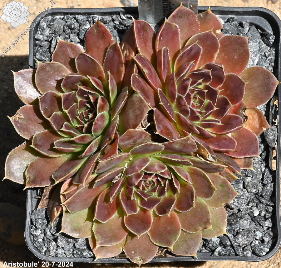 Rosetten bis 5 cm, Blätter rundlich, kurz bespitzt, Mischfarbe rosa - rot