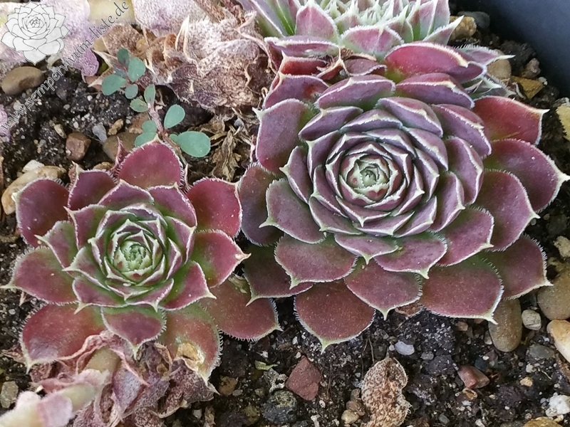 kleine Rosetten, dunkles Rot, Blattränder hell