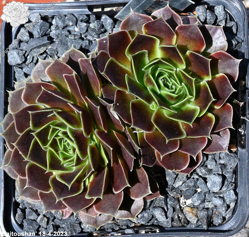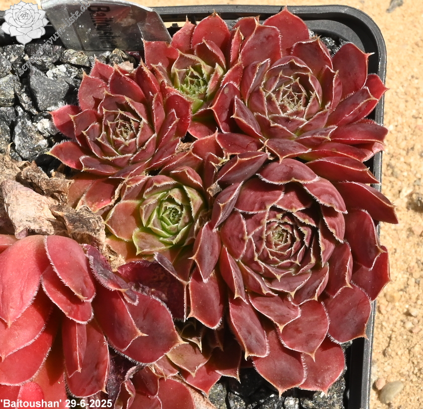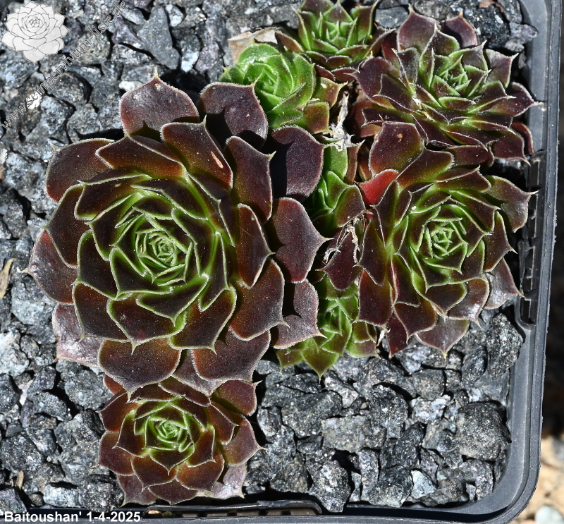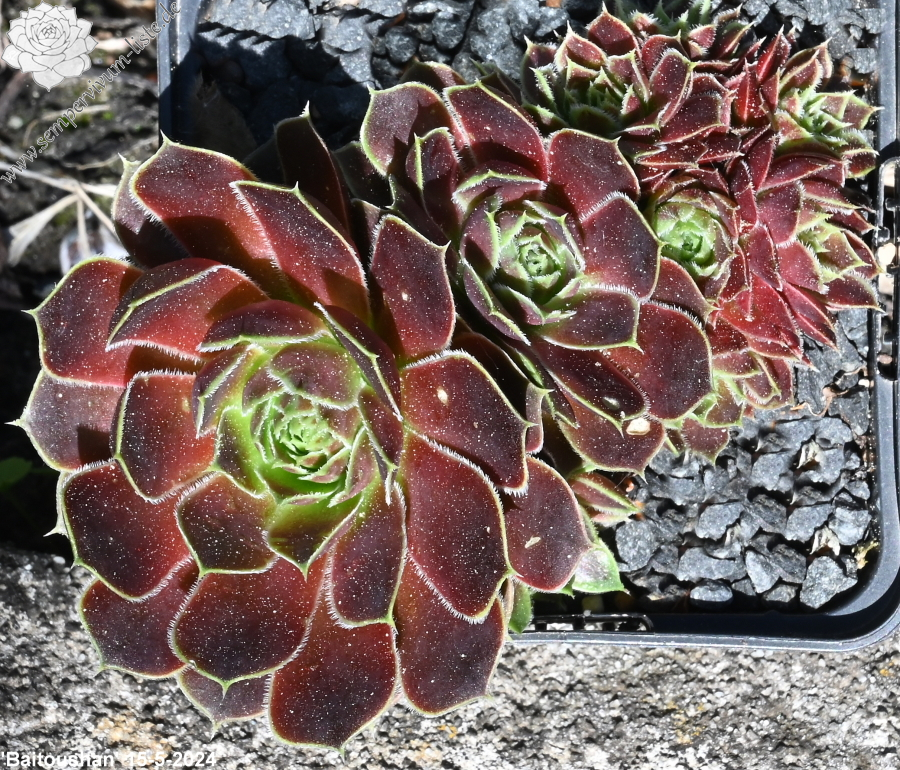 kleine Rosetten, Blätter keilförmig, lang bespitzt, Mischfarben rot - braun - lila, Blattränder hell, leicht bewimpert