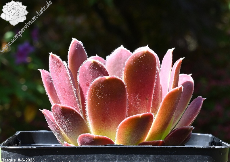 Rosetten bis 6 cm, Basis lindgrün in rose übergehend, Blattränder hell bewimpert