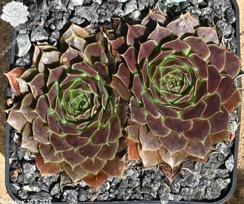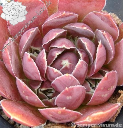 Rosetten bis 5 cm, Blätter kurz eiförmig, kurz bespitzt, lachsorange - lachsrot , Blattränder hell, leicht bewimpert
