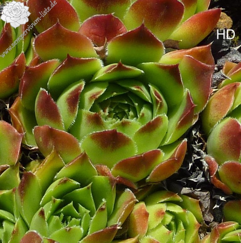 kleine Rosetten, kräftig hellgrün mit roten Spitzen, leicht bewimpert