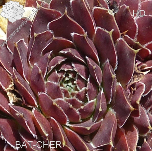 kleine Rosetten, oval lang bespitzt, dunkles Rot, leicht bewimpert