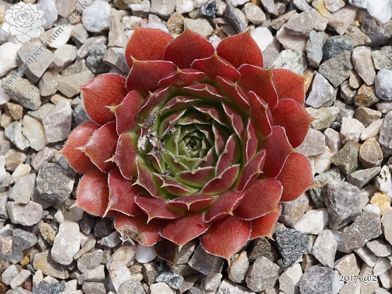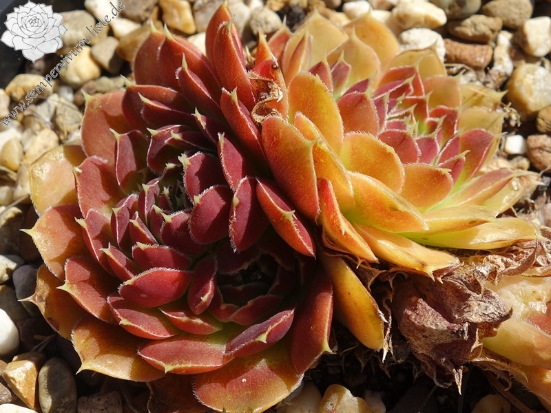 kleine Rosetten, Blätter rundlich, kurz bespitzt, Basis lindgrün, obere Blattdrittel orange - rosa, Blattränder hell, bewimpert