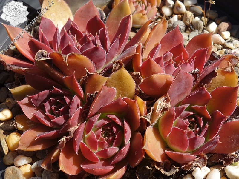 kleine Rosetten, Blätter oval, kurz bespitzt, dunkles Rotbraun, Ränder leicht bewimpert
