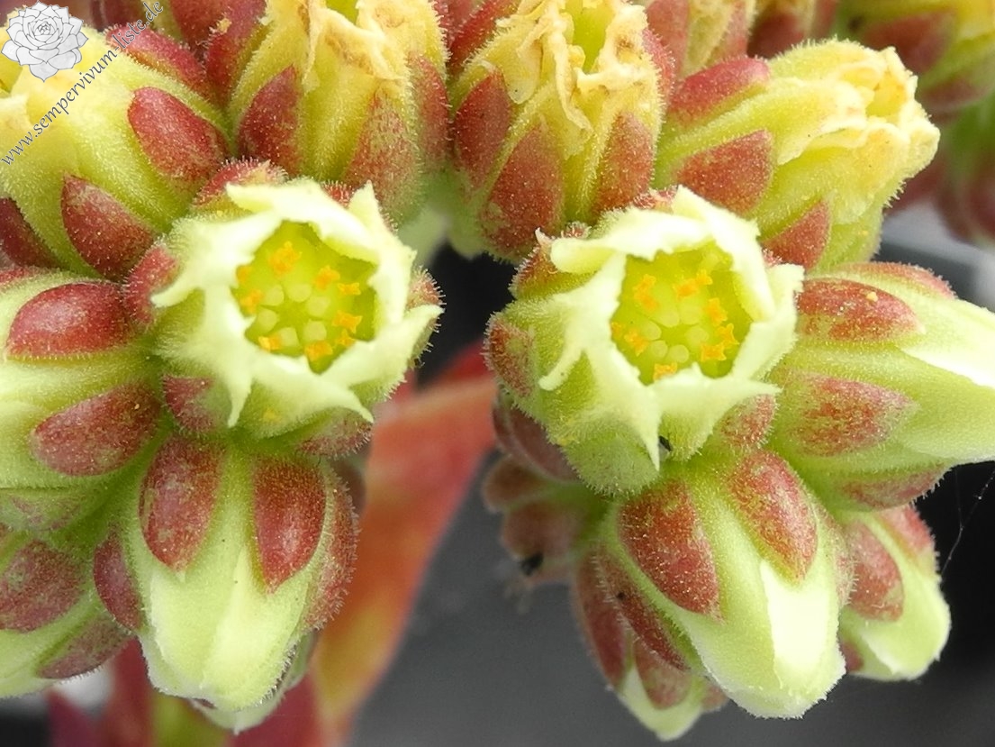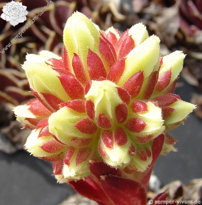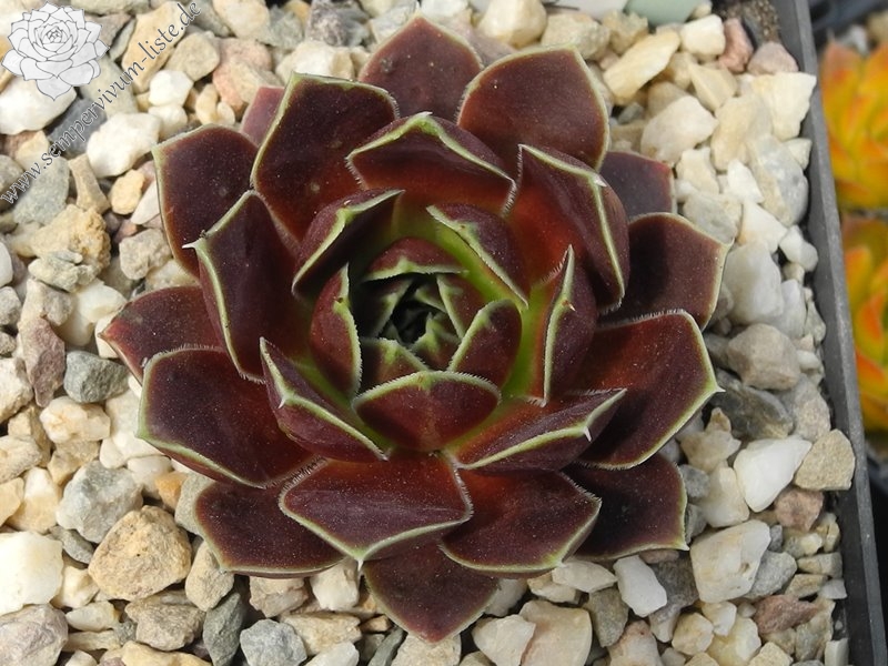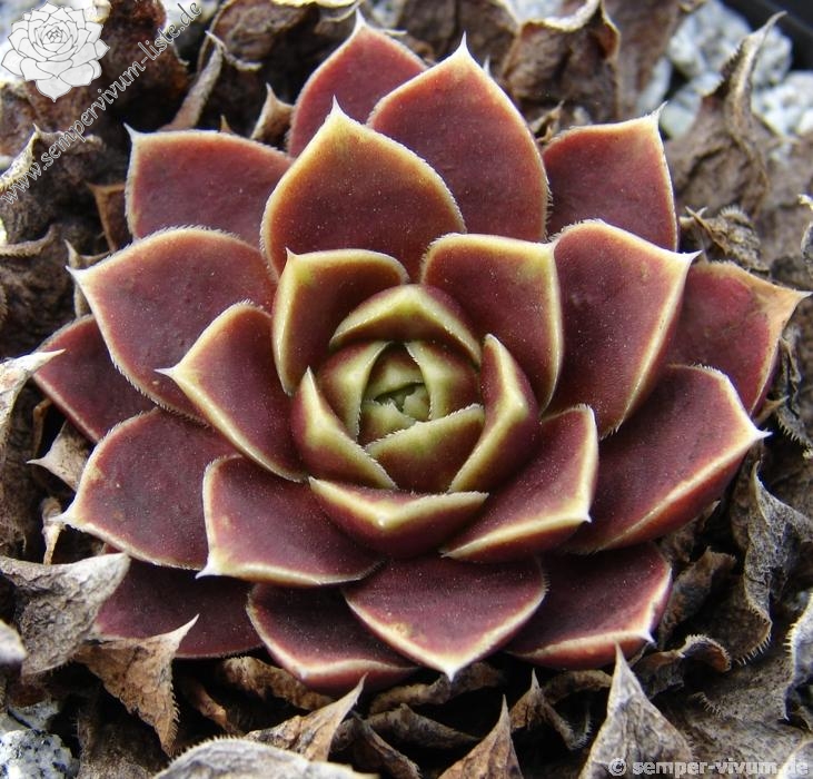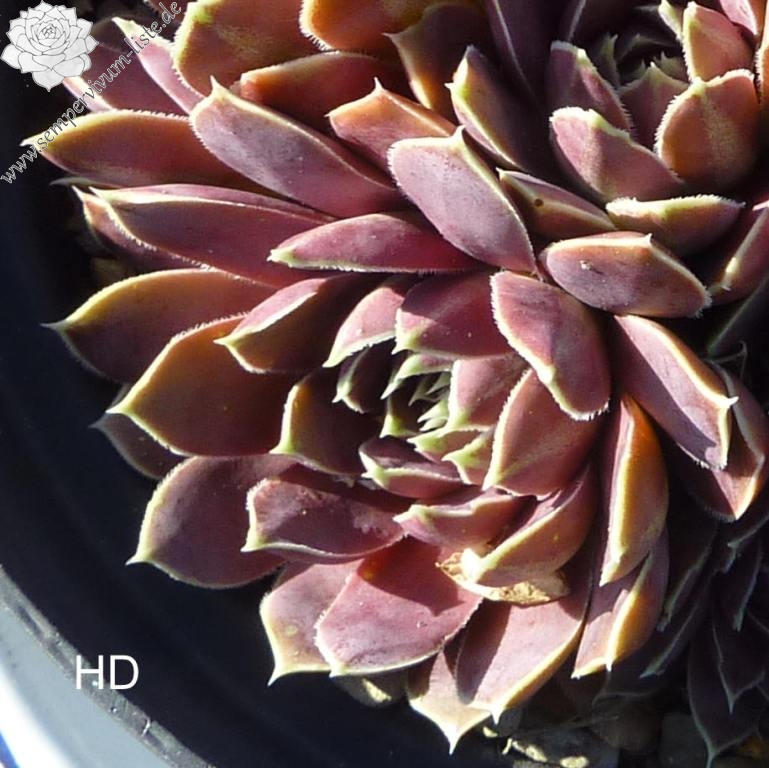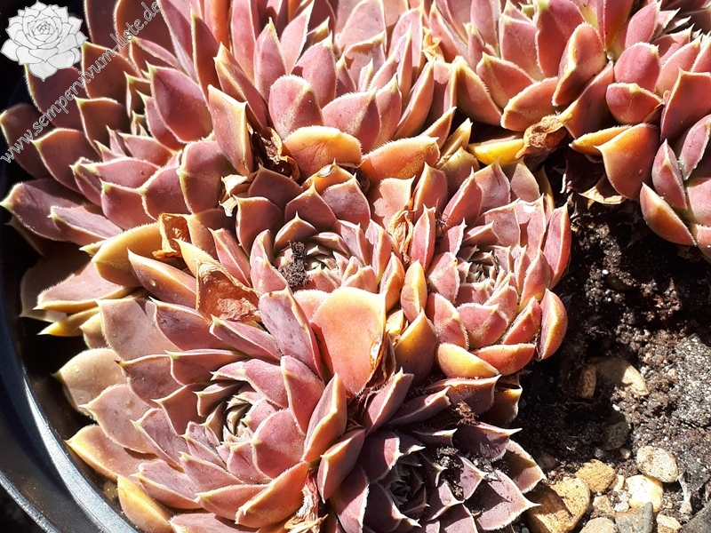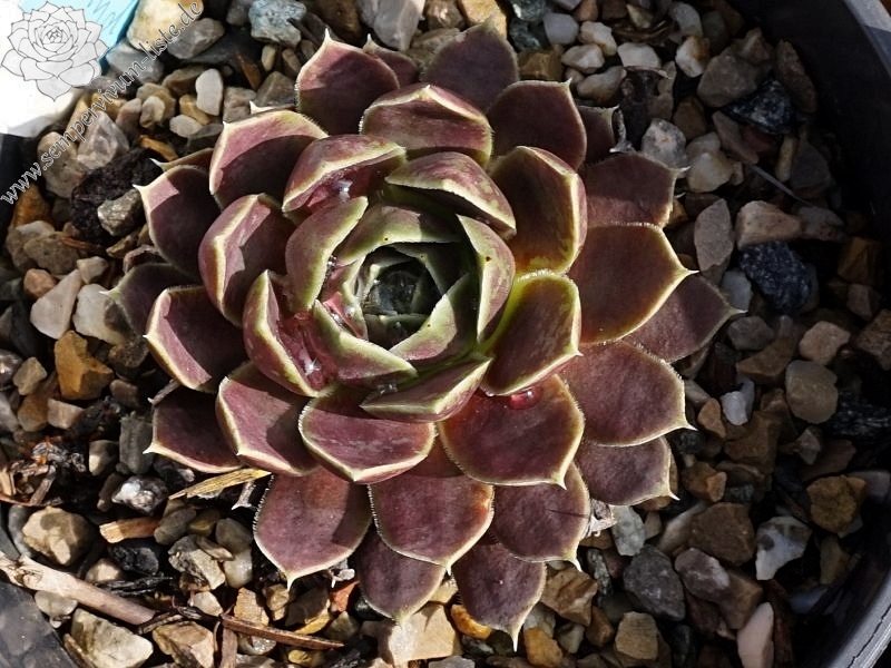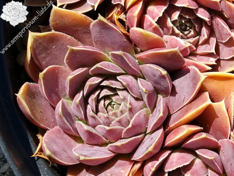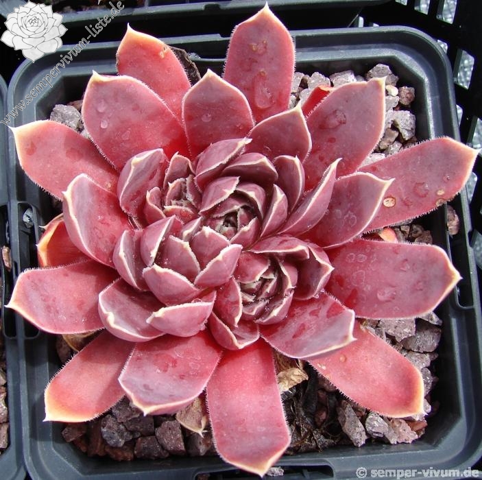 Rosetten bis 6 cm, trübes Rot, Blattränder hell, zart bewimpert