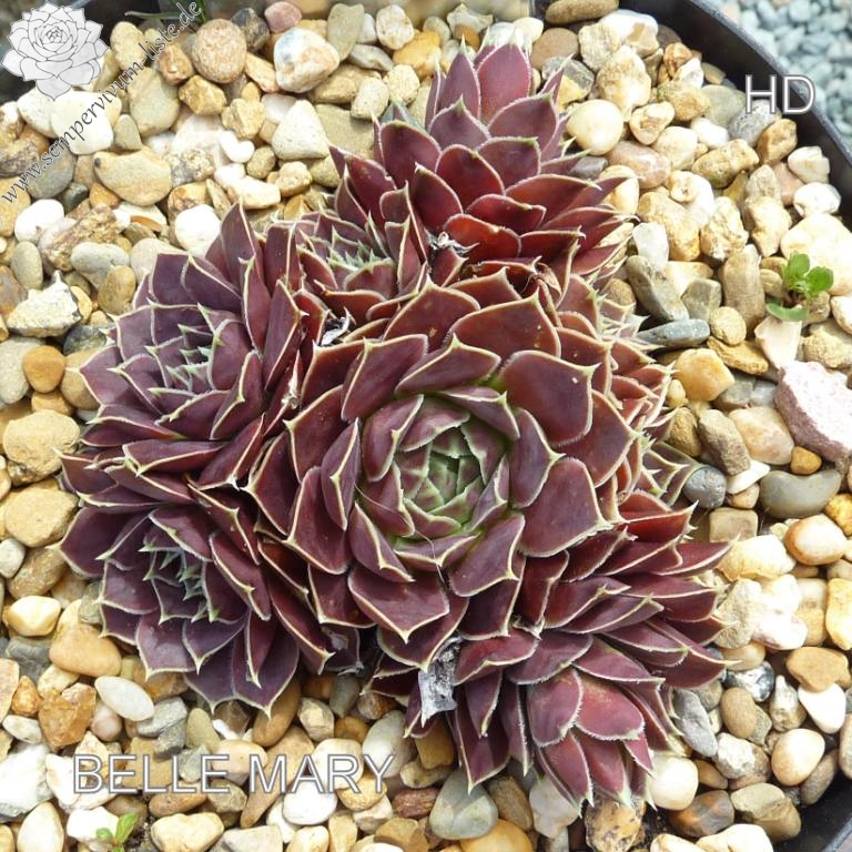 kleine Rosetten, Blätter keilförmig, lang bespitzt, trübes rot, Blattränder gelb