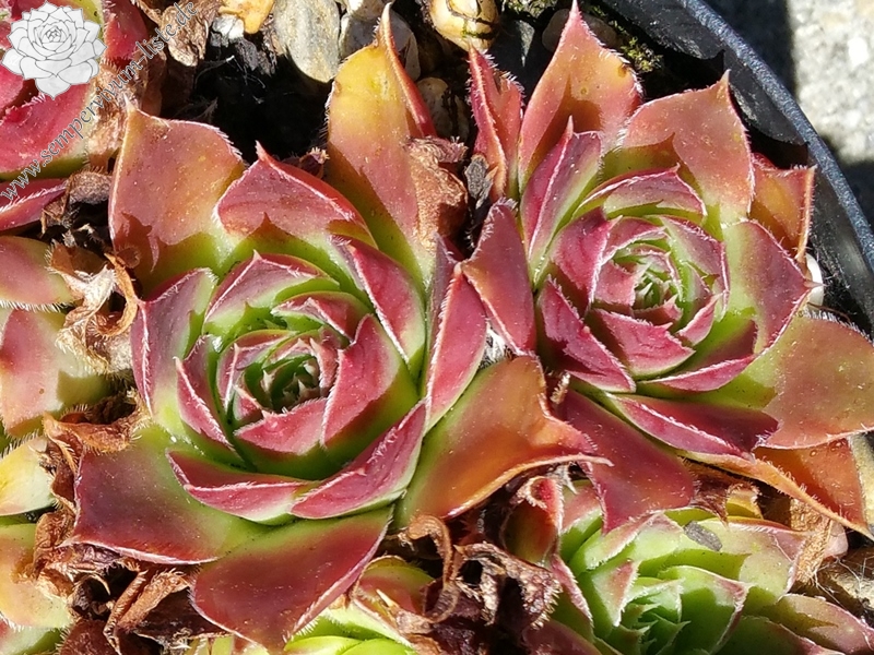 Rosetten bis 6 cm, Basis hellgrün, oberes Drittel der Blätter burgunderrot