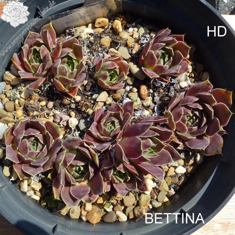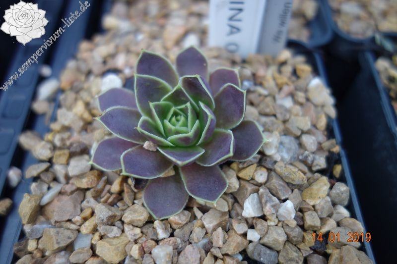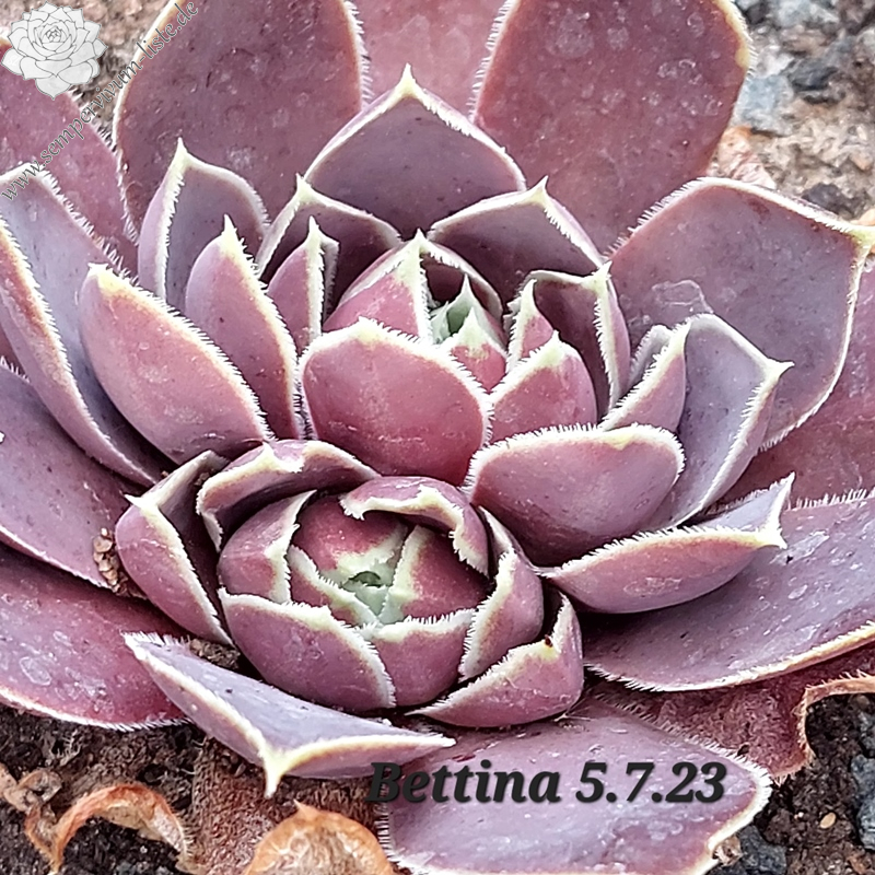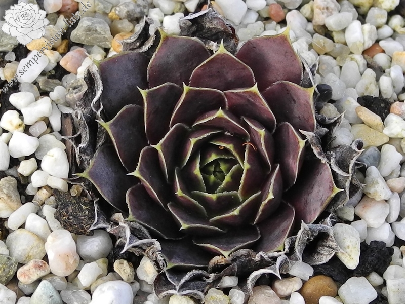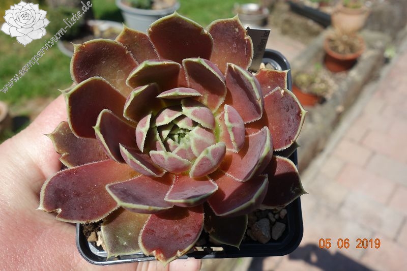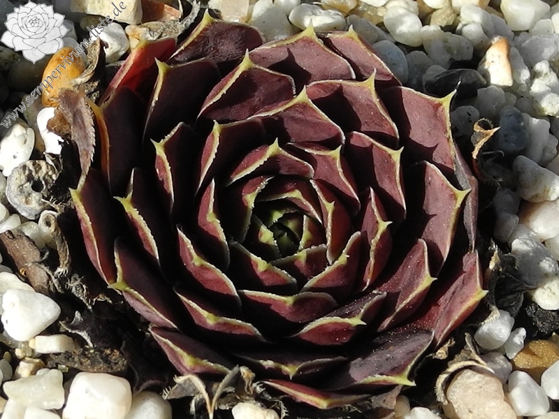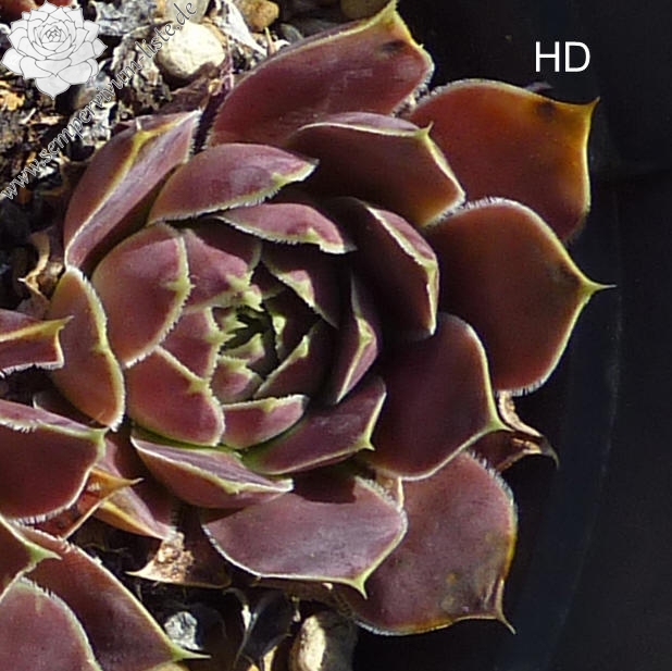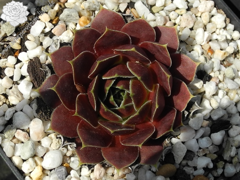 Rosetten bis 8 cm, rot mit hellgrünem Rand, fein bewimpert