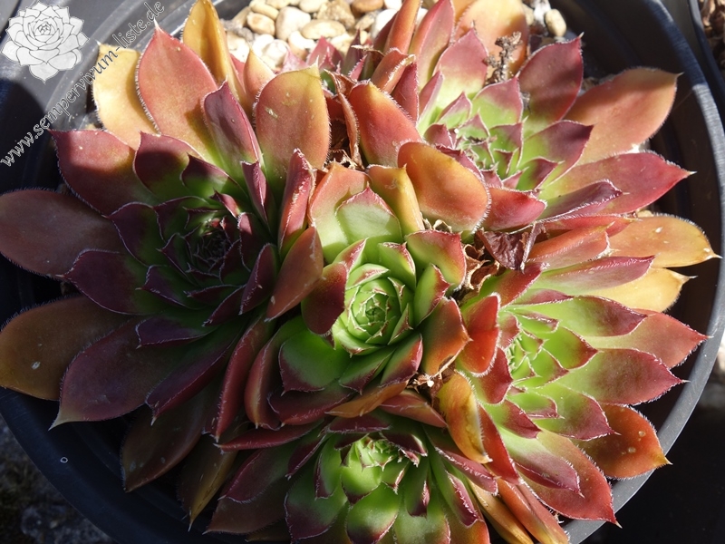 Rosetten bis 8 cm, Blätter linealisch, kurz bespitzt, helles Grün, braunrote Spitzen