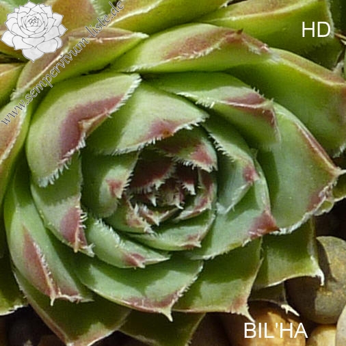 kleine Rosetten, Blätter oval, kurz bespitzt, oliv - grün, bräunliche Blattspitzen, Ränder bewimpert