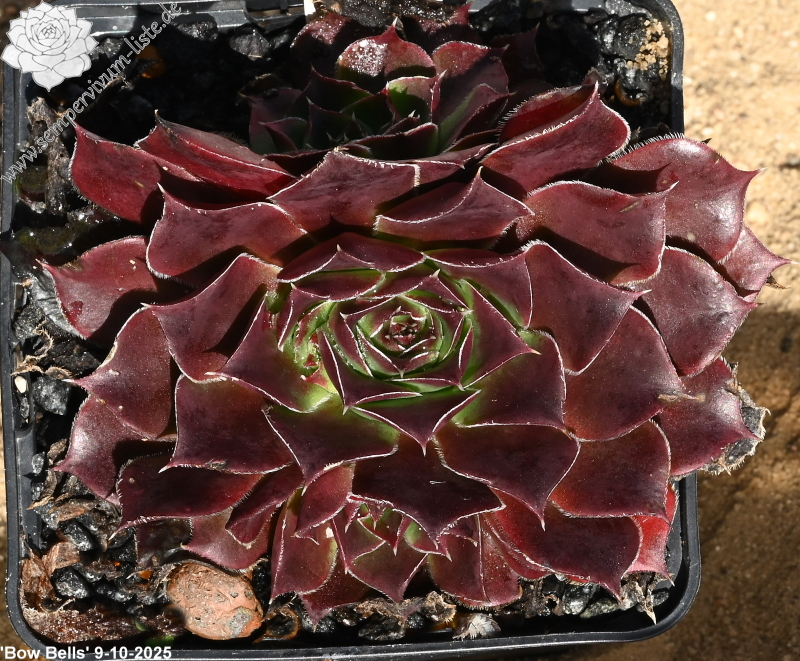 Rosette bis 10 cm, kurze spatelige Blätter, leuchtendes Dunkelrot, Blattränder hell bewimpert
