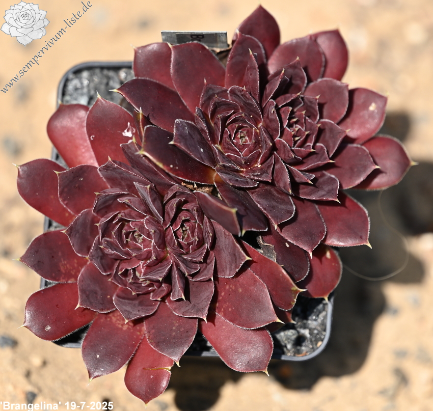 kleine Rosetten, Blätter rundlich, lang bespitzt , dunkles Rotlila, Blattränder silbern bewimpert