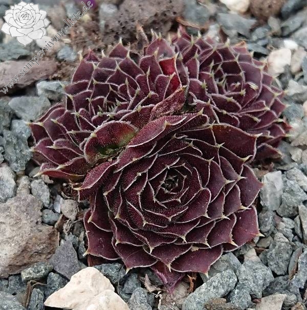 Rosetten bis 6 cm, Blätter lang bespitzt, Blattoberfläche samtig, trübes Lila, Blattränder helle Wimpern