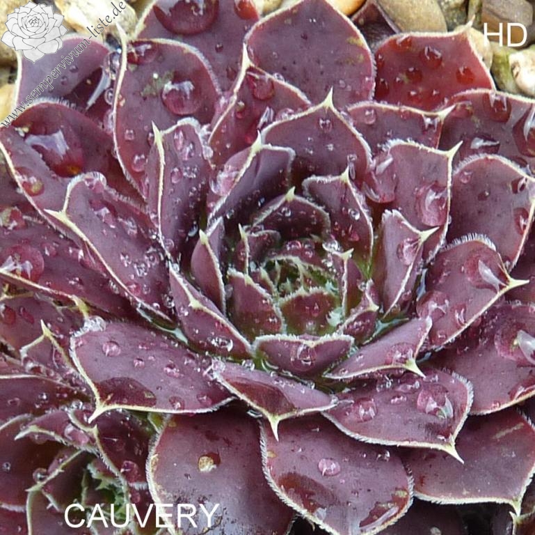 große Rosetten, Blätter eiförmig, kurz bespitzt, trübes Rot - Lila, Blattränder hell, kurz bewimpert