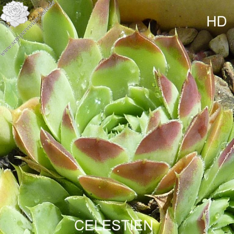 kleine Rosetten, Blätter eiförmig, kurz bespitzt, helles Grün, Spitzen rosa -braun