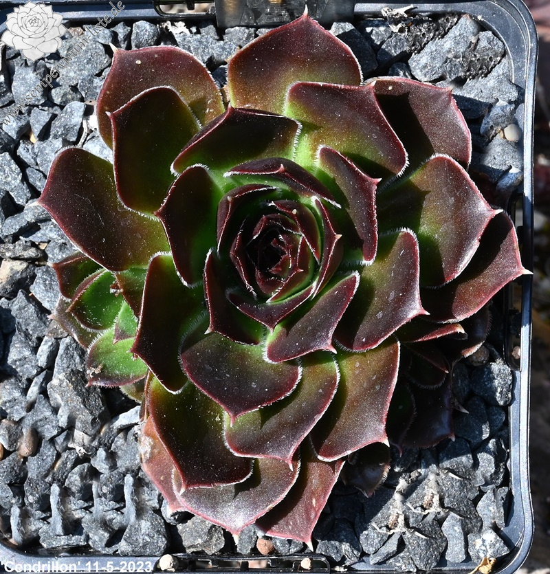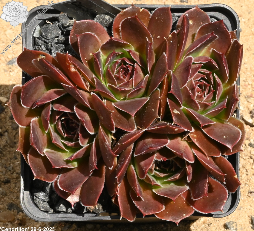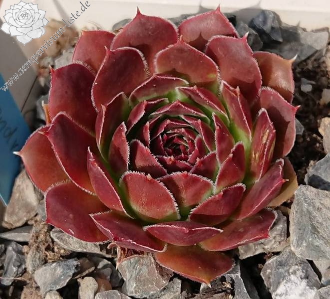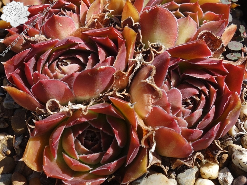 Rosetten bis 5 cm, Blätter rundlich, kurz bespitzt, Basis helles Grün, Rest dunkles Rotbraun, Ränder bewimpert
