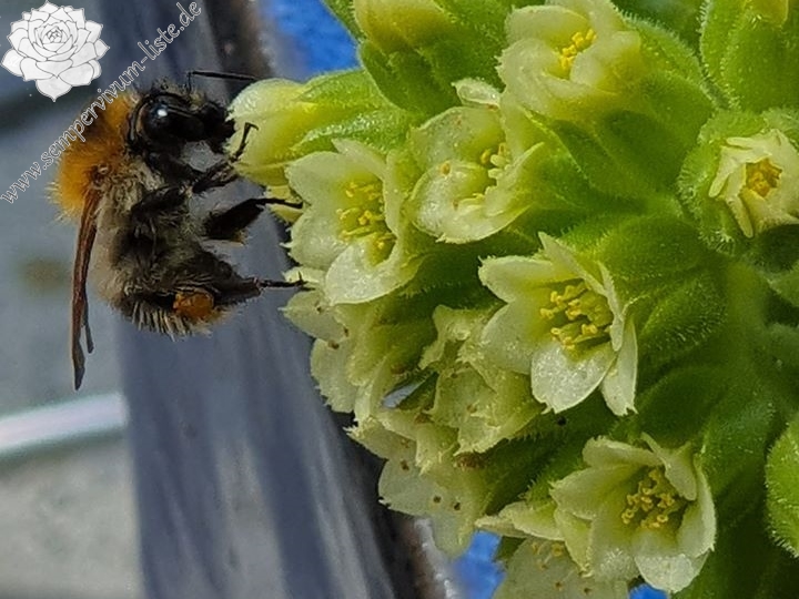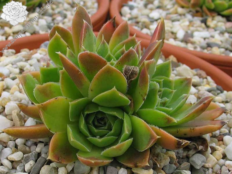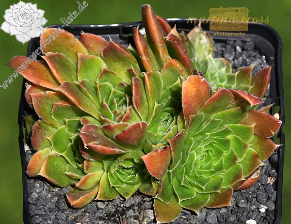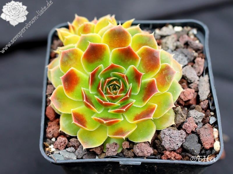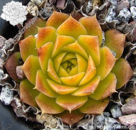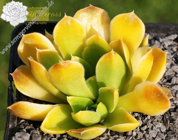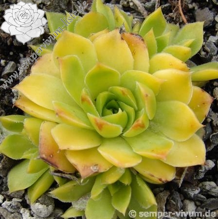Besitzt sehr gute Eigenschaften. Die Rosetten sind kräftig gelb gefärbt und zeigen schwache orange Blattenden. Im Frühjahr färben sich die Rosetten langsam von innen heraus grünlich. Eine wüchsige Pflanze, die sich gut teilen lässt.