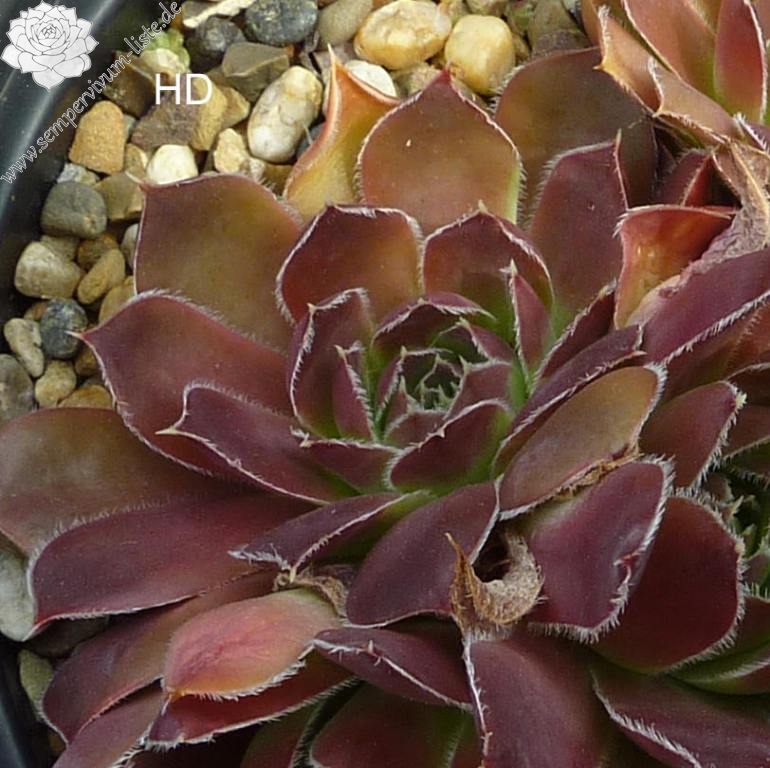 Rosetten bis 7 cm, Blätter lang bespitzt, Mischtöne grün, braun, lila , Blattränder hell bewimpert