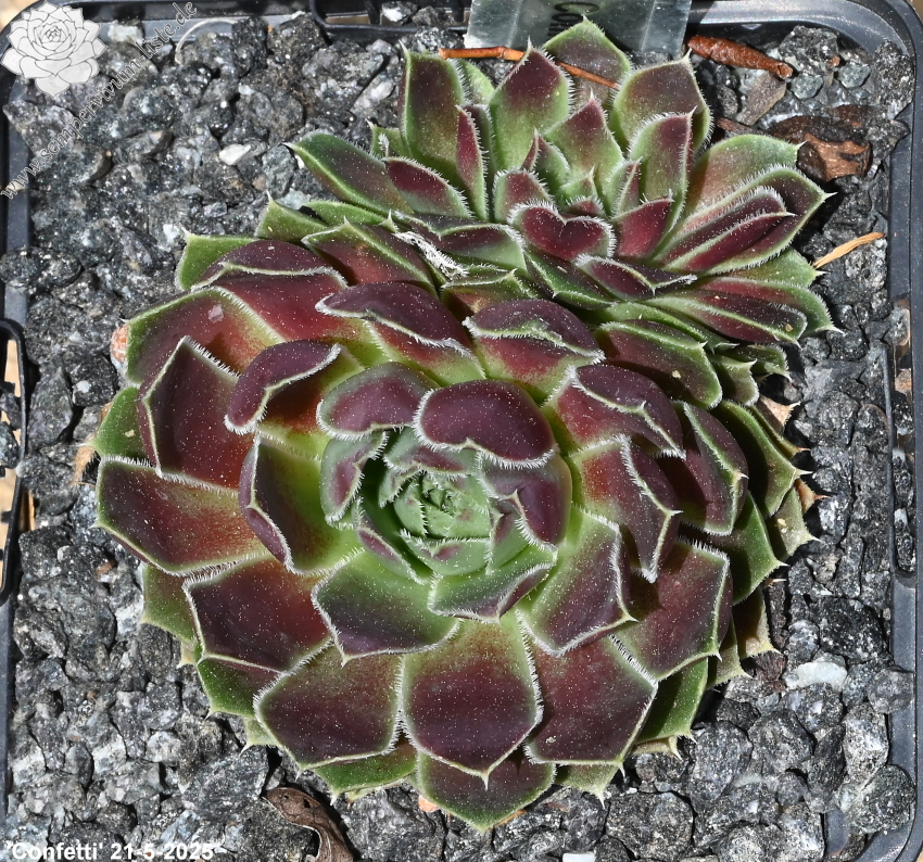Rosetten bis 5 cm, Blätter spatelig, Mischtöne zartes Grün - Rosa, Blattränder hell, bewimpert