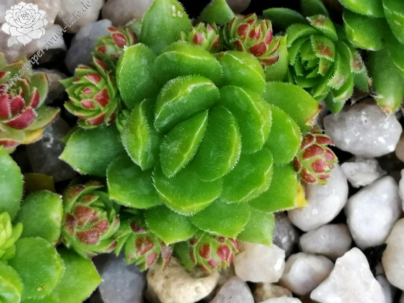 Sie wächst und vermehrt sich nicht ganz so schnell wie andere Jovis (Globiferum). Die kugeligen Rosetten bilden keine richtige Mitte, sondern die innersten Blätter stehen aufrecht zueinander geneigt und meistens quer, sie bilden so oft ein Tipi in der Mitte. Die Blätter sind sehr sukkulent und die Zeichnung ähnelt 'Sweet Lime Girl', ist aber stärker ausgeprägt. Die hellgrünen bis gelblichen Blätter sind im oberen Teil auf der Rückseite rot gesprenkelt, bei den Rollern ist fast die Hälfte der Rückseite dunkelrot. Bisher hat sie noch nicht geblüht.