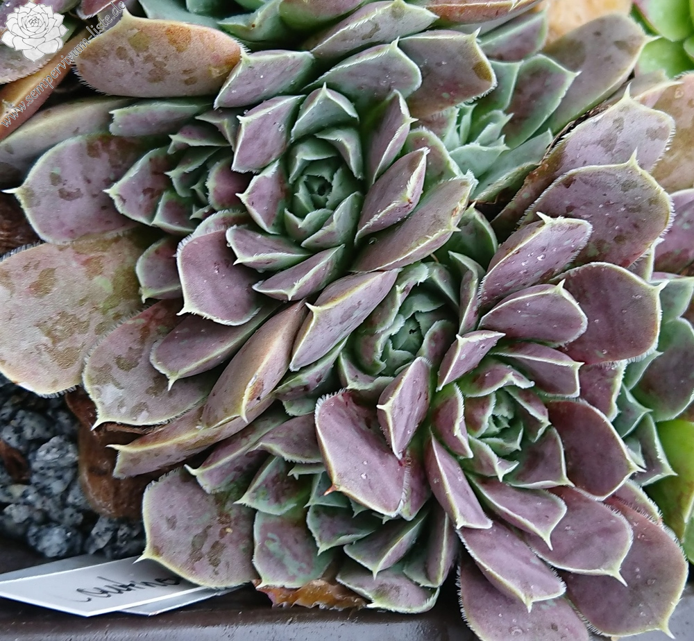 kleine Rosetten, Blätter keilförmig, Mischfarben helles oliv - trübes rosa