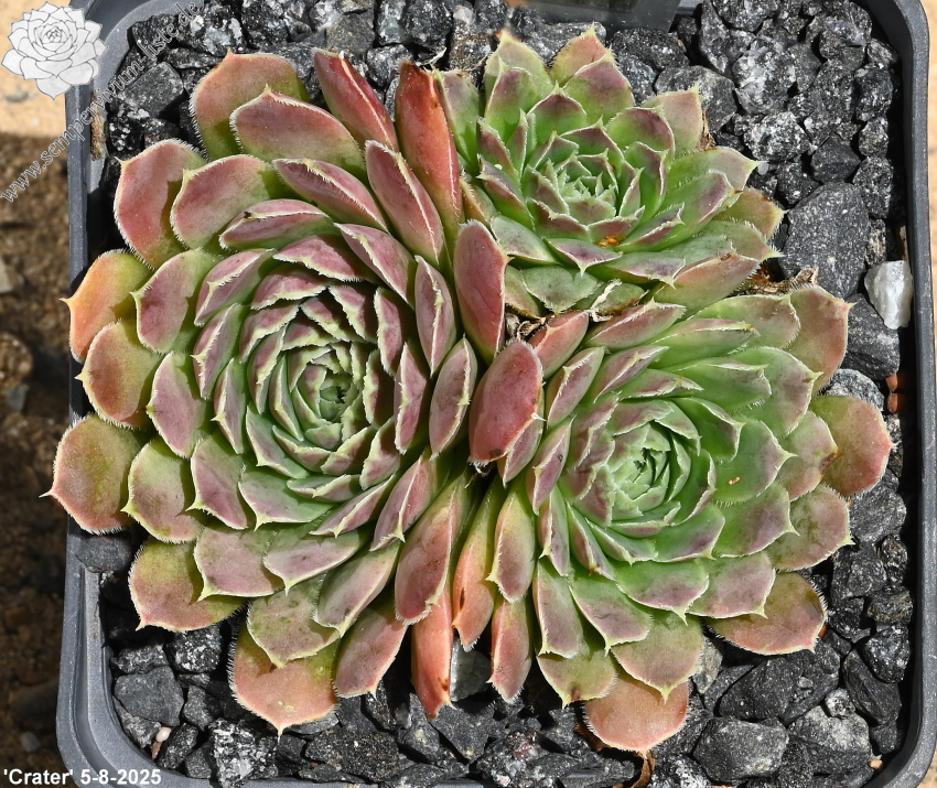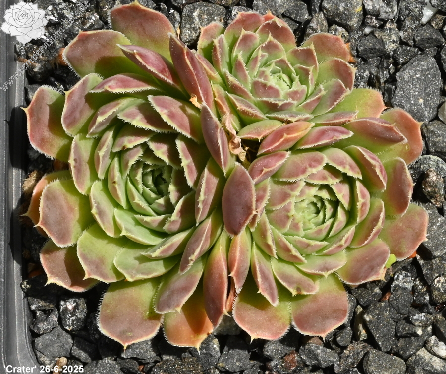 Rosetten bis 5 cm, Blätter kurz und keilförmig, lindgrün mit blass rosa Spitzen