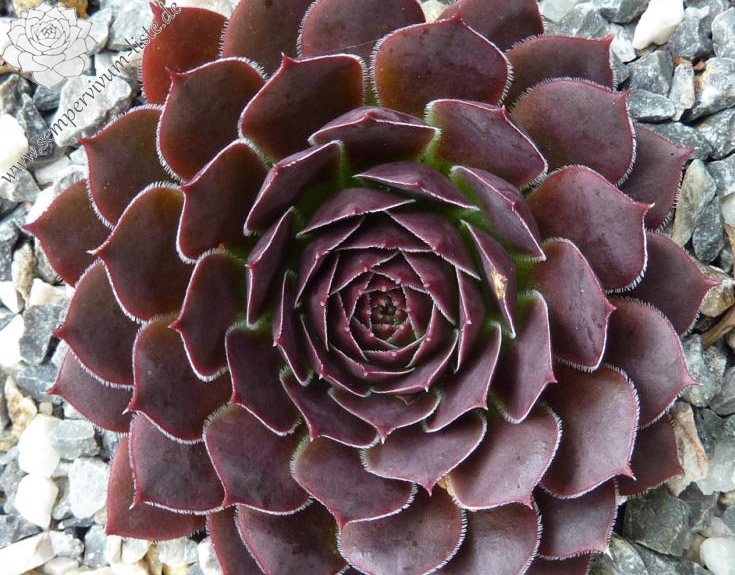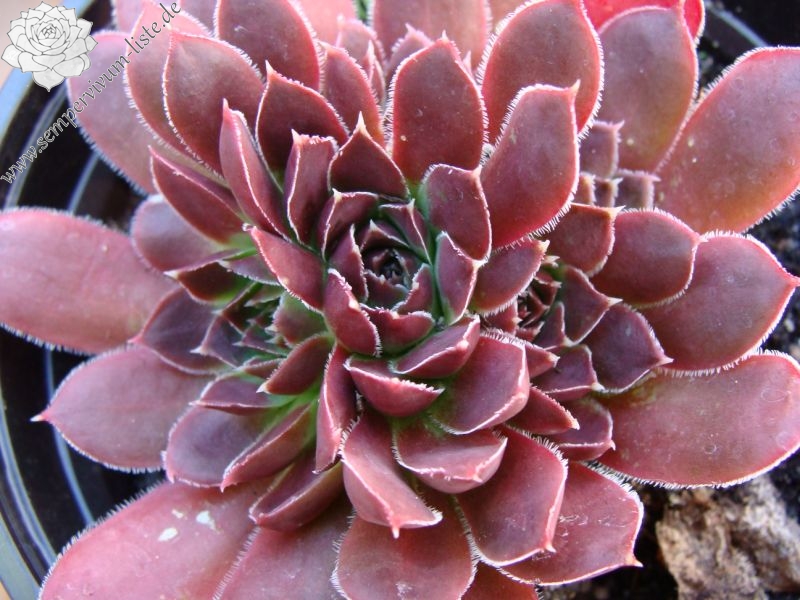 kleine kompakte Rosetten, Blätter rundlich, weinrot , Blattränder leicht hell bewimpert