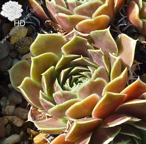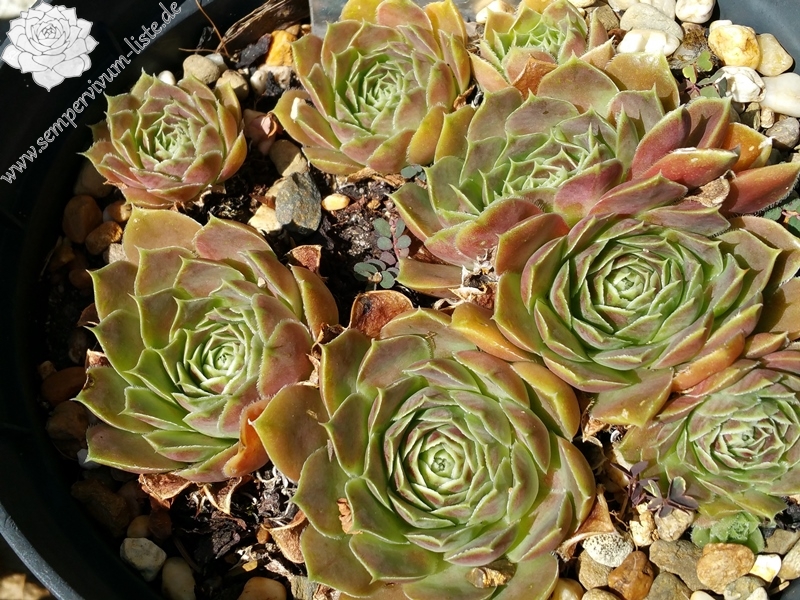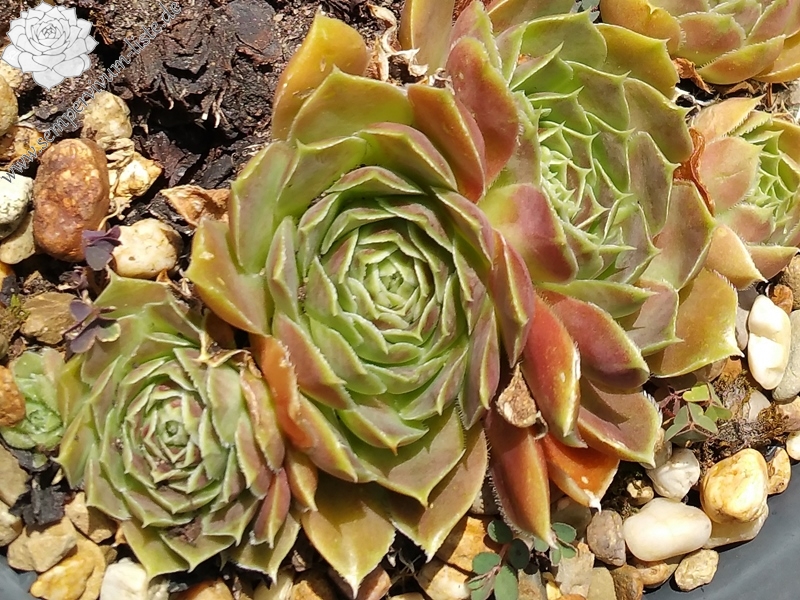 Rosetten bis 6 cm, kurze keilförmige Blätter, Mischtöne helles Grün - rosa gelblich, helle Blattränder