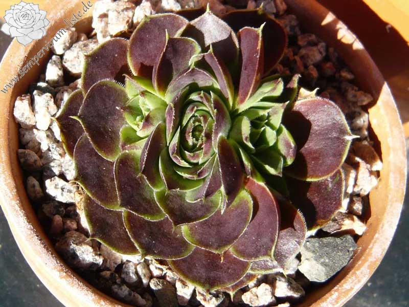 Rosetten bis 5 cm, rundliche Blätter, kurz bespitzt, dunkles rot , helle Blattränder, wenig bewimpert