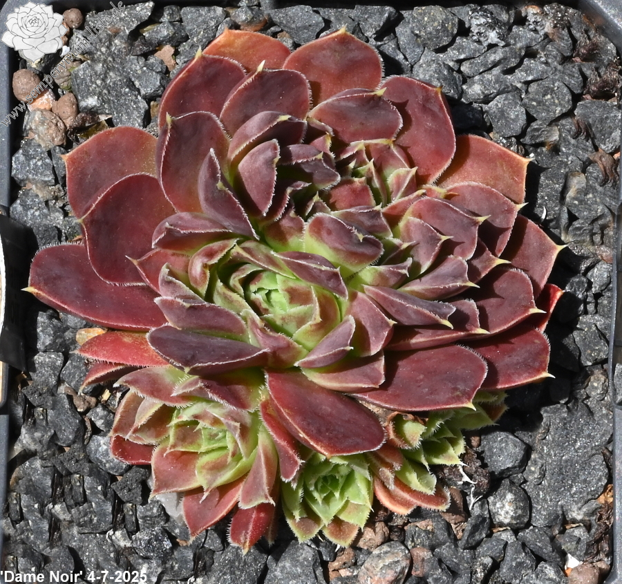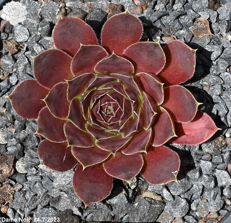 Der Name "Schwarze Dame" ist hier schon sehr gut gewählt. 'Dame Noir '/ Jovi gehört zu den dunkelsten Hybriden in Kultur. Mittelgroße Rosetten formen kompakte Hügel.