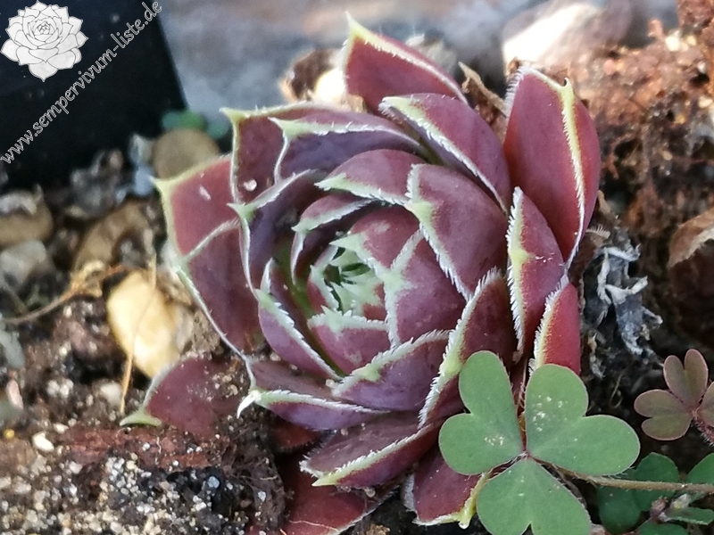 Rosetten 6 cm, Blätter oval, lang bespitzt, Mischtöne rot - ocker, Blattränder hell, leicht bewimpert