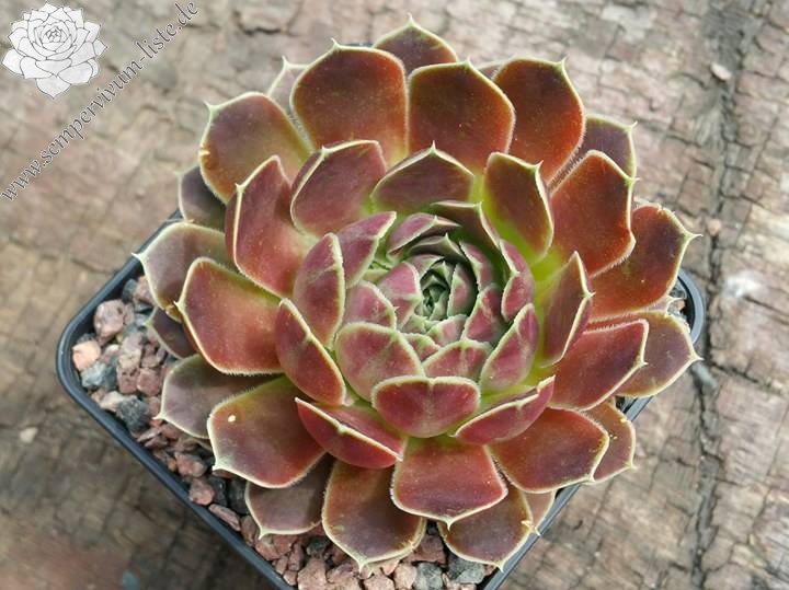 sehr kleine kompakte Rosetten, Blätter rundlich , kurz bespitzt, helleres Kastanienbraun