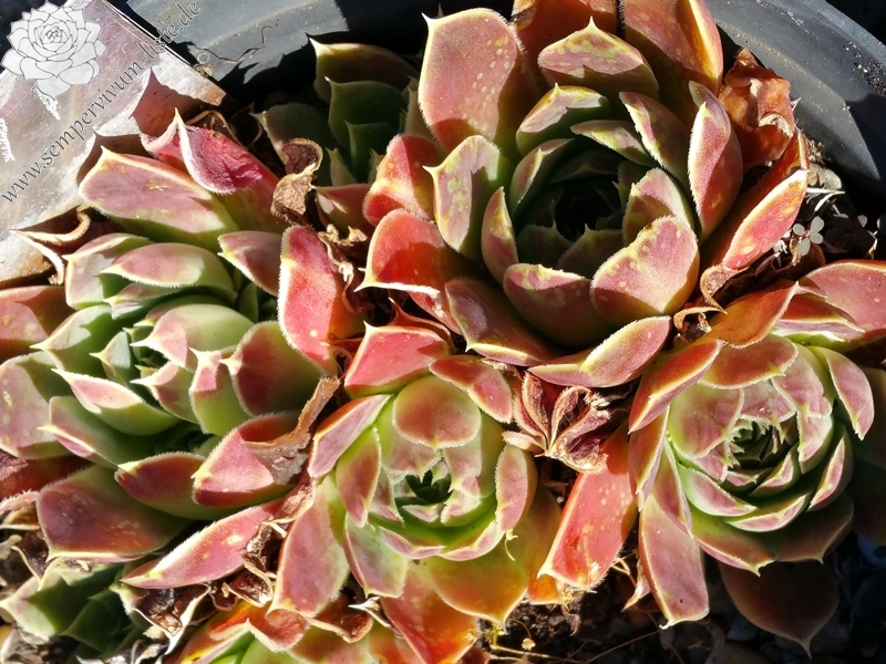 kleine Rosetten, Blätter oval. kurz bespitzt, Mischtöne helles Grün - rot, Blattränder hell, wenig bewimpert